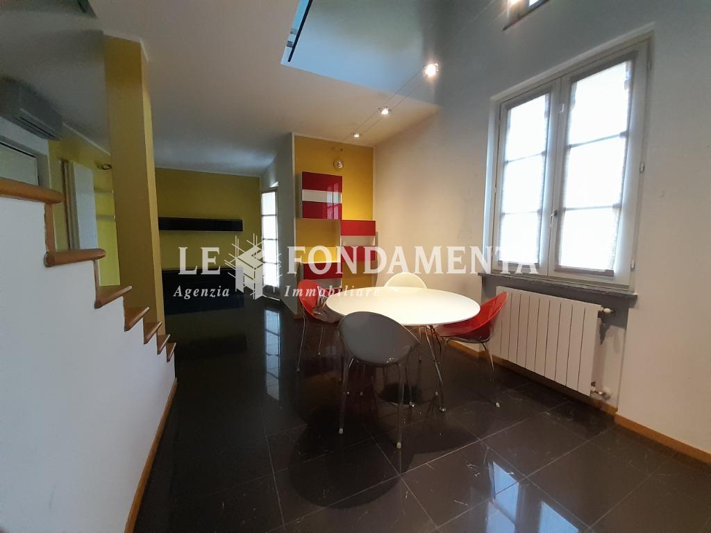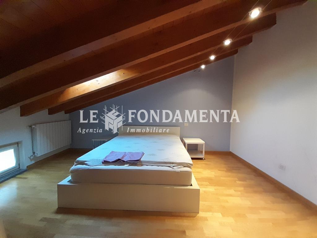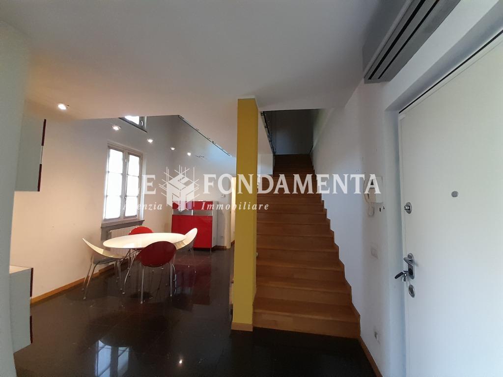 Ombriano, situato in piccola ed elegante palazzina, proponiamo particolare appartamento disposto su due livelli, al primo piano troviamo un soggiorno con angolo cottura e terrazzino, camera da letto (attualmente utilizzata in funzione di cucina abitabile), disimpegno, ampio ripostiglio/lavanderia, bagno; una bellissima scala in legno ci porta al piano superiore mansardato con travi a vista, suddiviso in due ambienti ad uso camere da letto, soppalco con vista sul soggiorno, bagno.