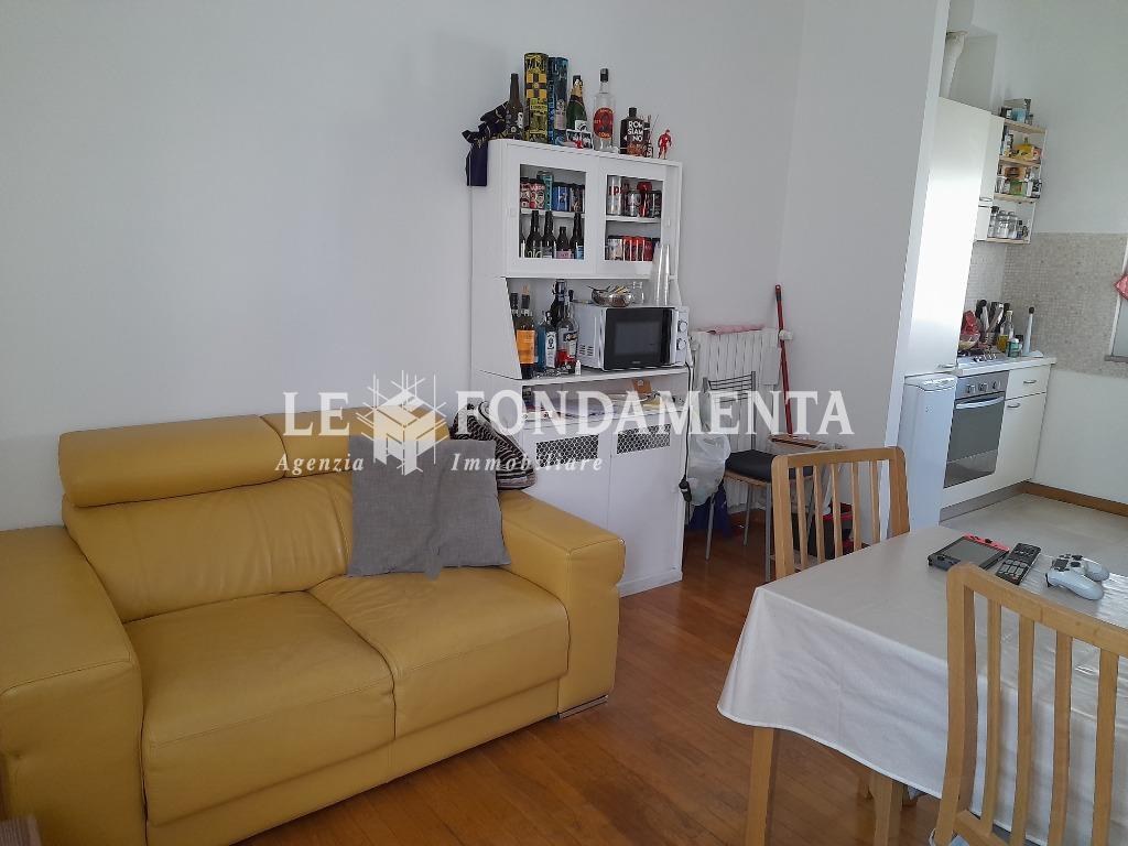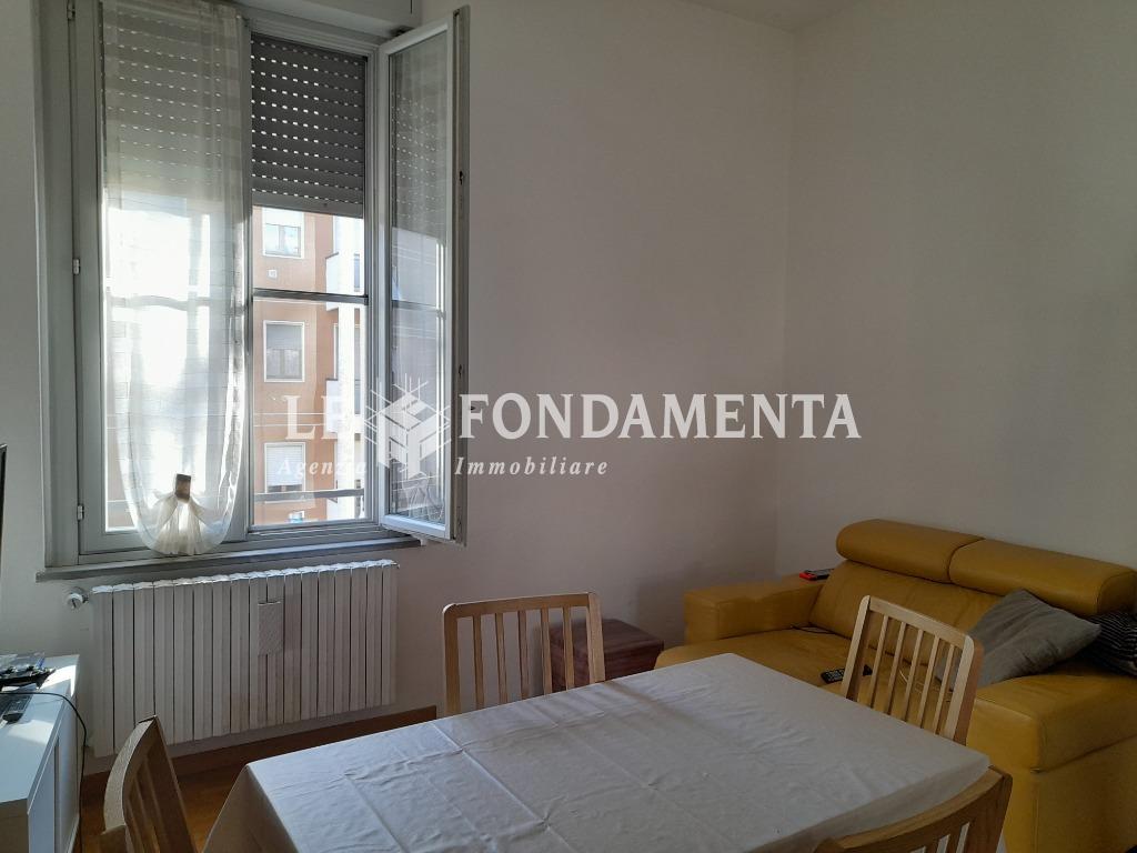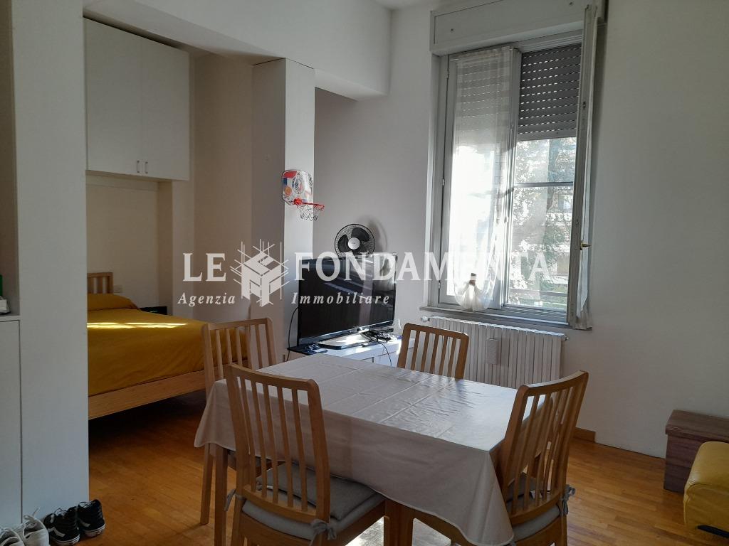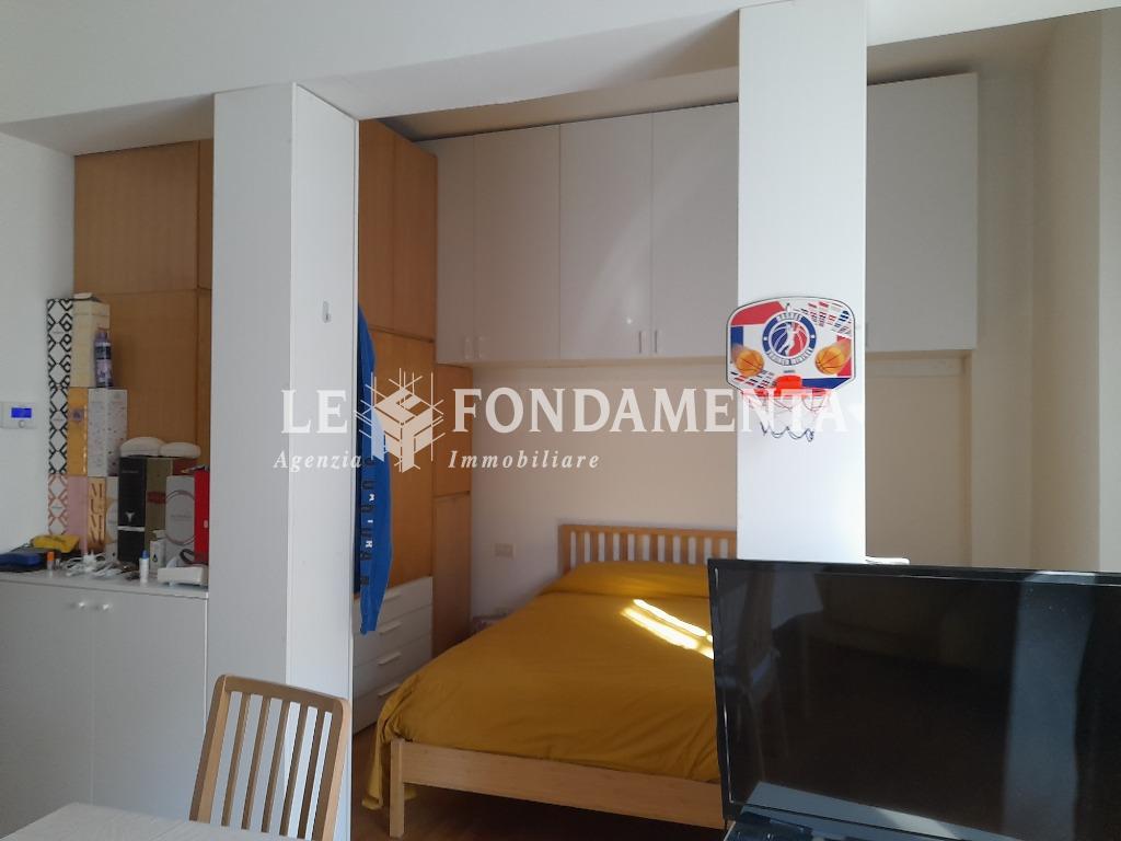 In piccola palazzina di recente ristrutturazione, luminoso monolocale arredato, posto al piano primo con ascensore, composto da ingresso, soggiorno/letto, angolo cottura attrezzato, bagno con vasca, balcone. Rifinito in parquet, serramenti con doppio vetro, portoncino blindato. Completo di box e cantina al piano interrato. Le spese condominiali sono di 100 euro mensili.