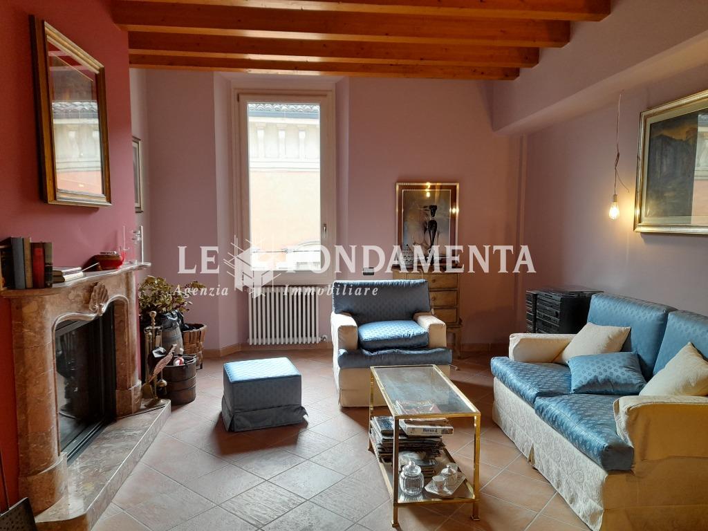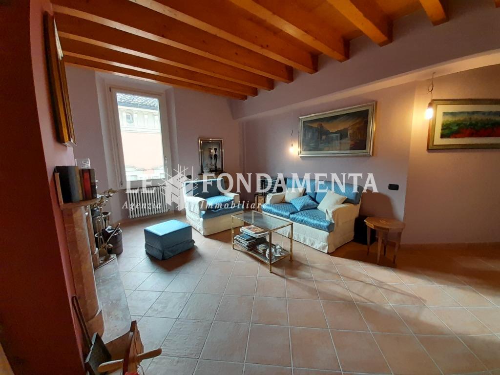 Inserito in contesto signorile nel centro storico di Crema, proponiamo particolare ed elegante appartamento disposto su due livelli, situato al piano secondo ed ultimo servito da ascensore, per un totale di 170 mq, così disposto: