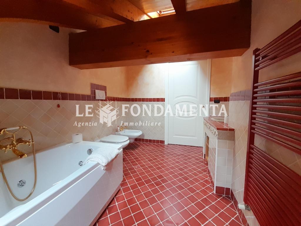 L'abitazione e' stata ristrutturata di recente con finiture ricercate e pregiate, serramenti nuovi in alluminio esternamente e legno all'interno con doppio vetro, travi a vista in tutta l'abitazione.