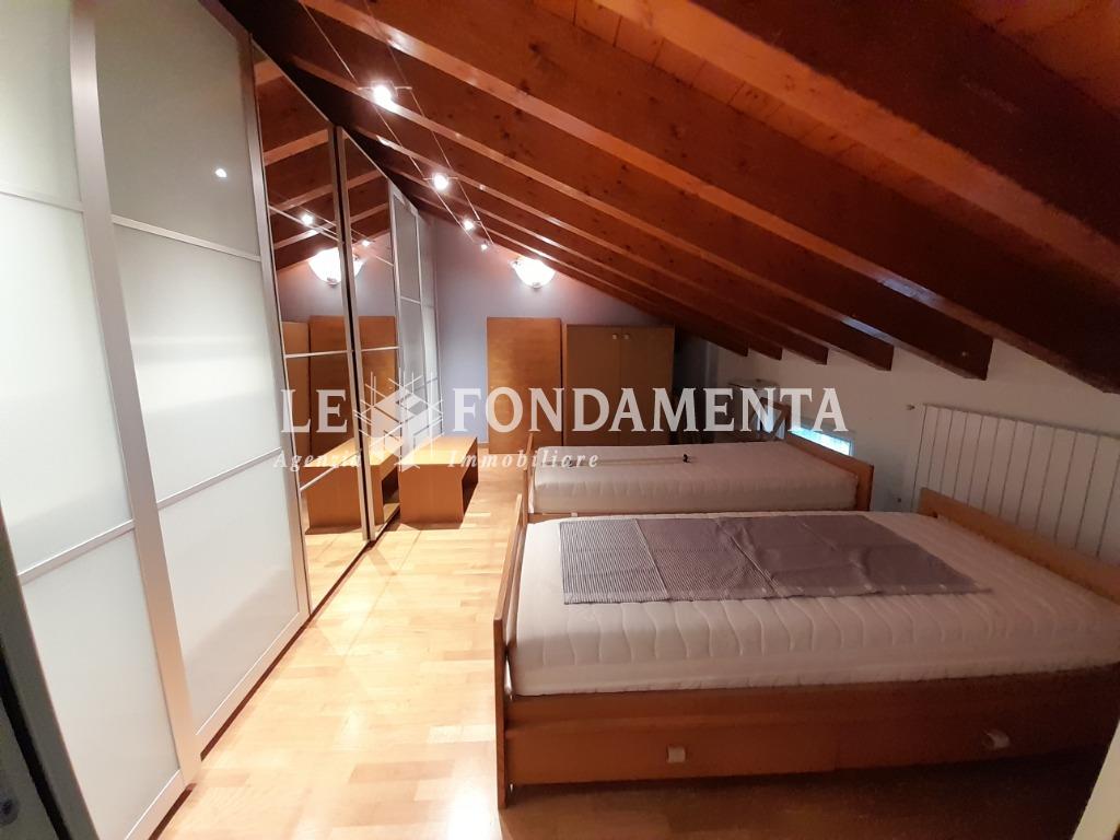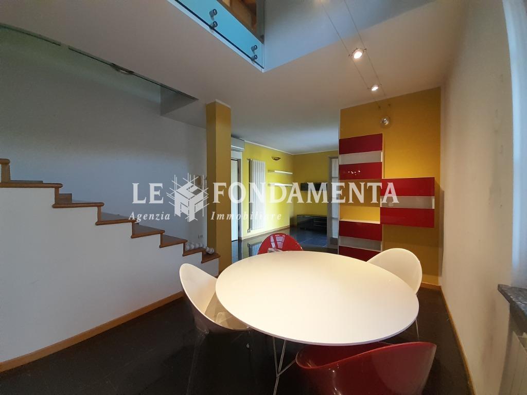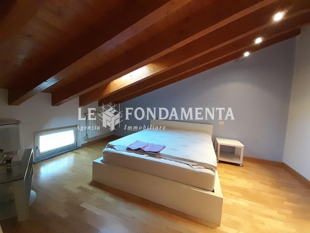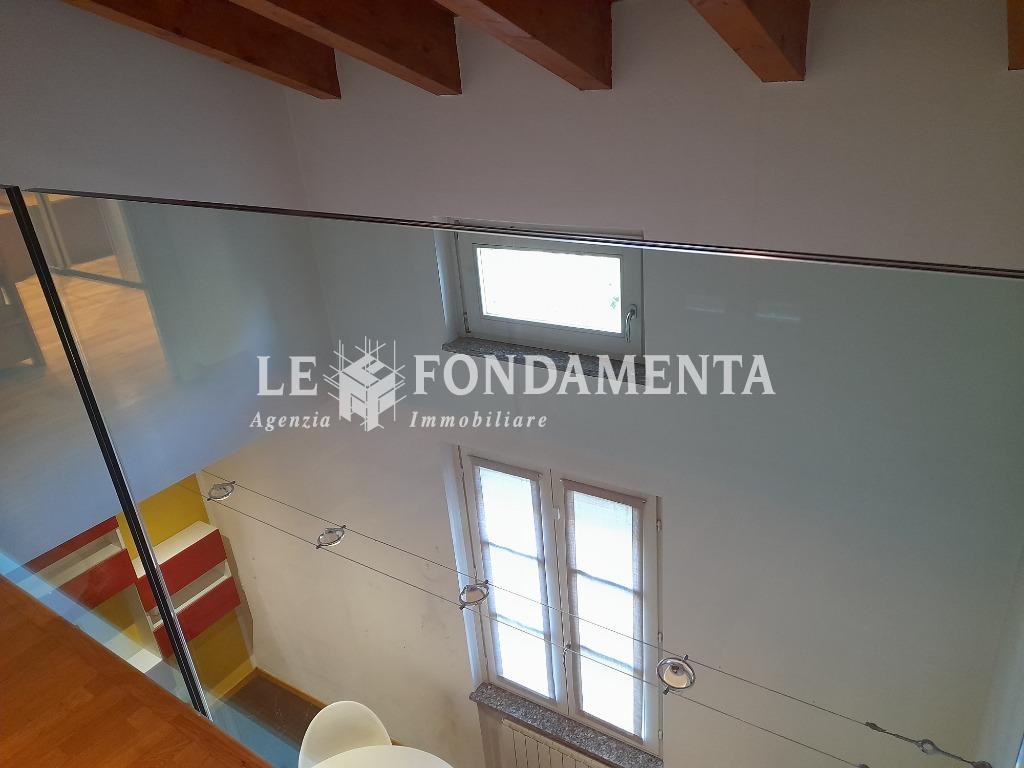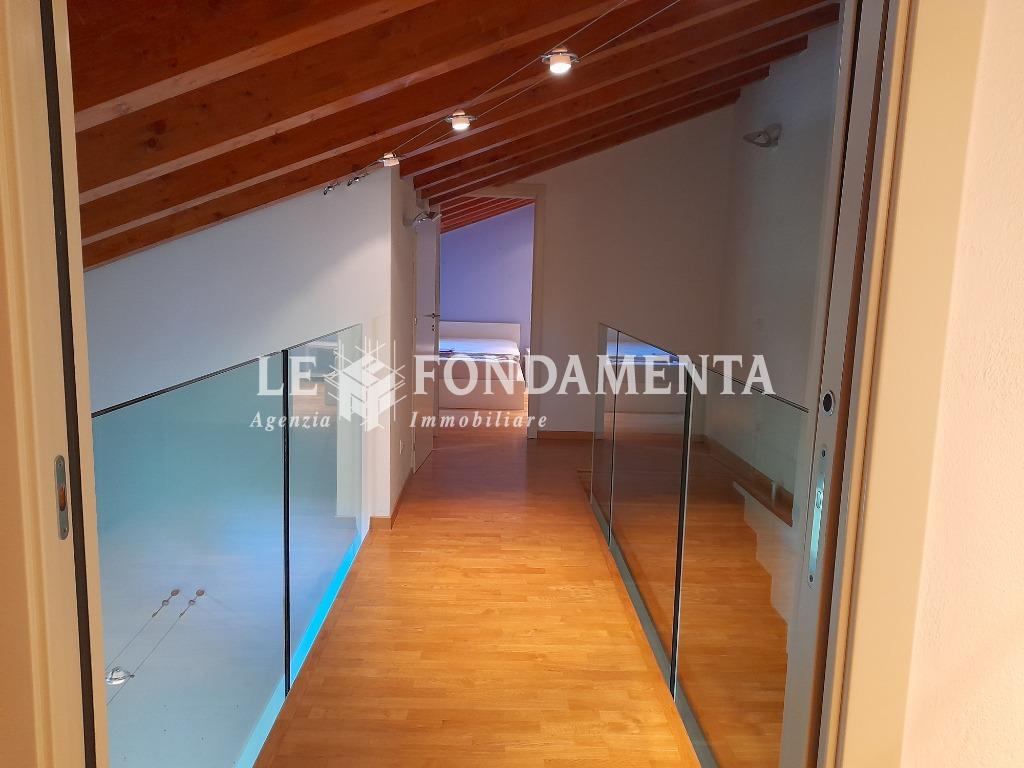 Ombriano, situato in piccola ed elegante palazzina, proponiamo particolare appartamento disposto su due livelli, al primo piano troviamo un soggiorno con angolo cottura e terrazzino, camera da letto (attualmente utilizzata in funzione di cucina abitabile), disimpegno, ampio ripostiglio/lavanderia, bagno; una bellissima scala in legno ci porta al piano superiore mansardato con travi a vista, suddiviso in due ambienti ad uso camere da letto, soppalco con vista sul soggiorno, bagno.