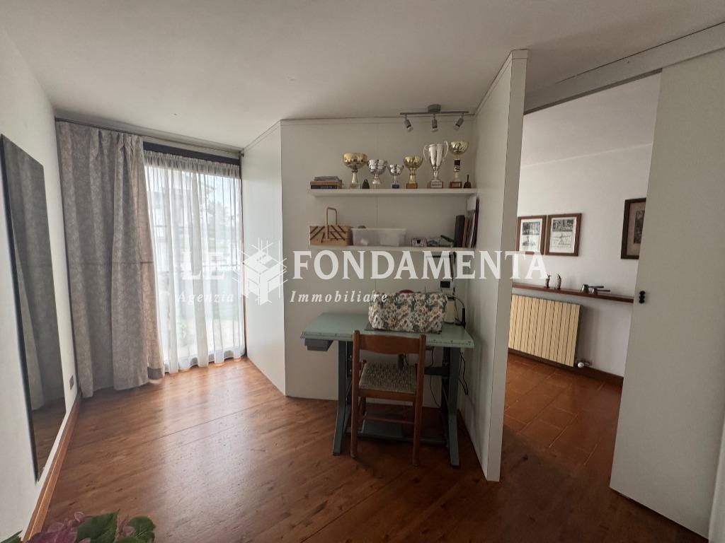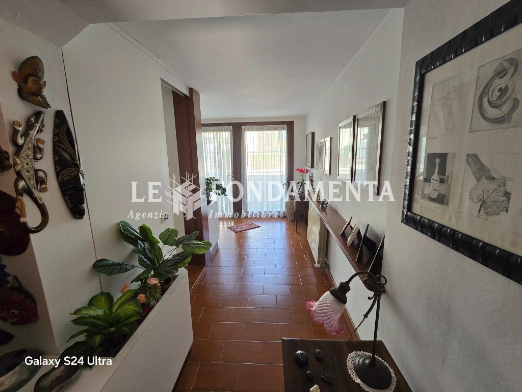 L'abitazione è disposta su due livelli per un totale di mq 146, al piano terra dall'ampio atrio d'ingresso accediamo ad una zona studio e ad un locale hobby con camino che si presta a svariati usi; al piano 1° entriamo nel soggiorno dotato di balcone per passare poi alla cucina abitabile e infine alla zona notte con due camere da letto e bagno.