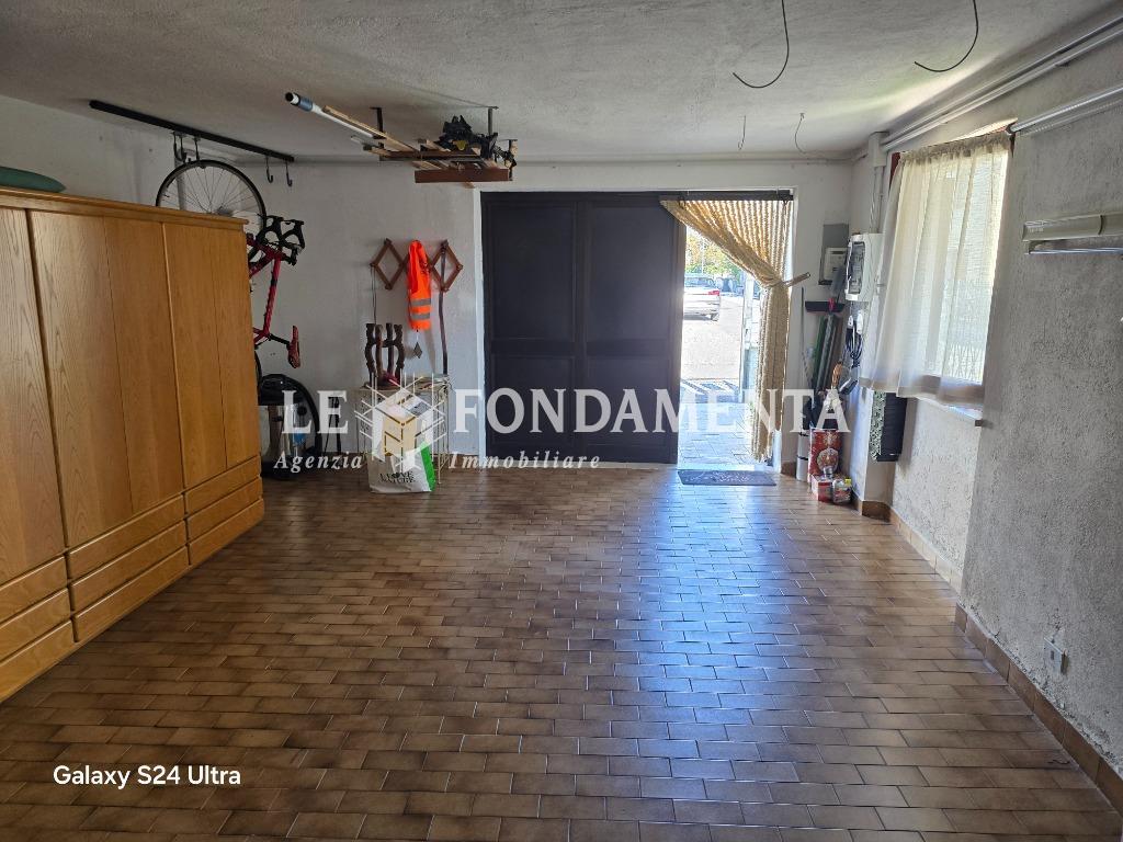 La proprietà e completata da un box di 40 mq dove possono trovare posto tre auto e da un giardino disposto sui tre lati dell'abitazione.
