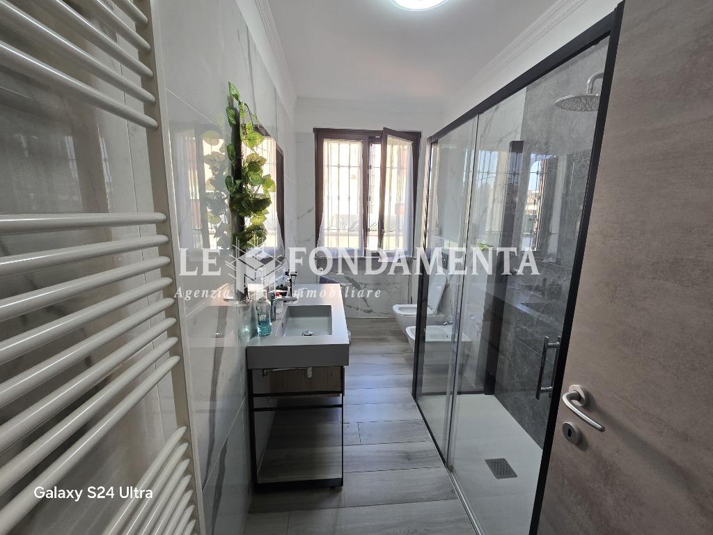 VILLA BIFAMILIARE di ampie dimensioni suddivisa in due unità immobiliari indipendenti fra loro. Al piano rialzato troviamo l'ampio appartamento di mq 130 recentemente ristrutturato e composto da: portico, salone, cucina abitabile, 2 camere da letto, bagno, ripostiglio, con possibilità di ripristinare la terza camera. Al piano 1° appartamento trilocale di mq 85 composto da: soggiorno, cucina abitabile, 2 camere da letto, bagno e grande terrazza. Al piano seminterrato della consistenza di mq 68 accediamo all'ampia taverna con locale adibito a cucina, lavanderia, cantina, wc e box di mq 60.